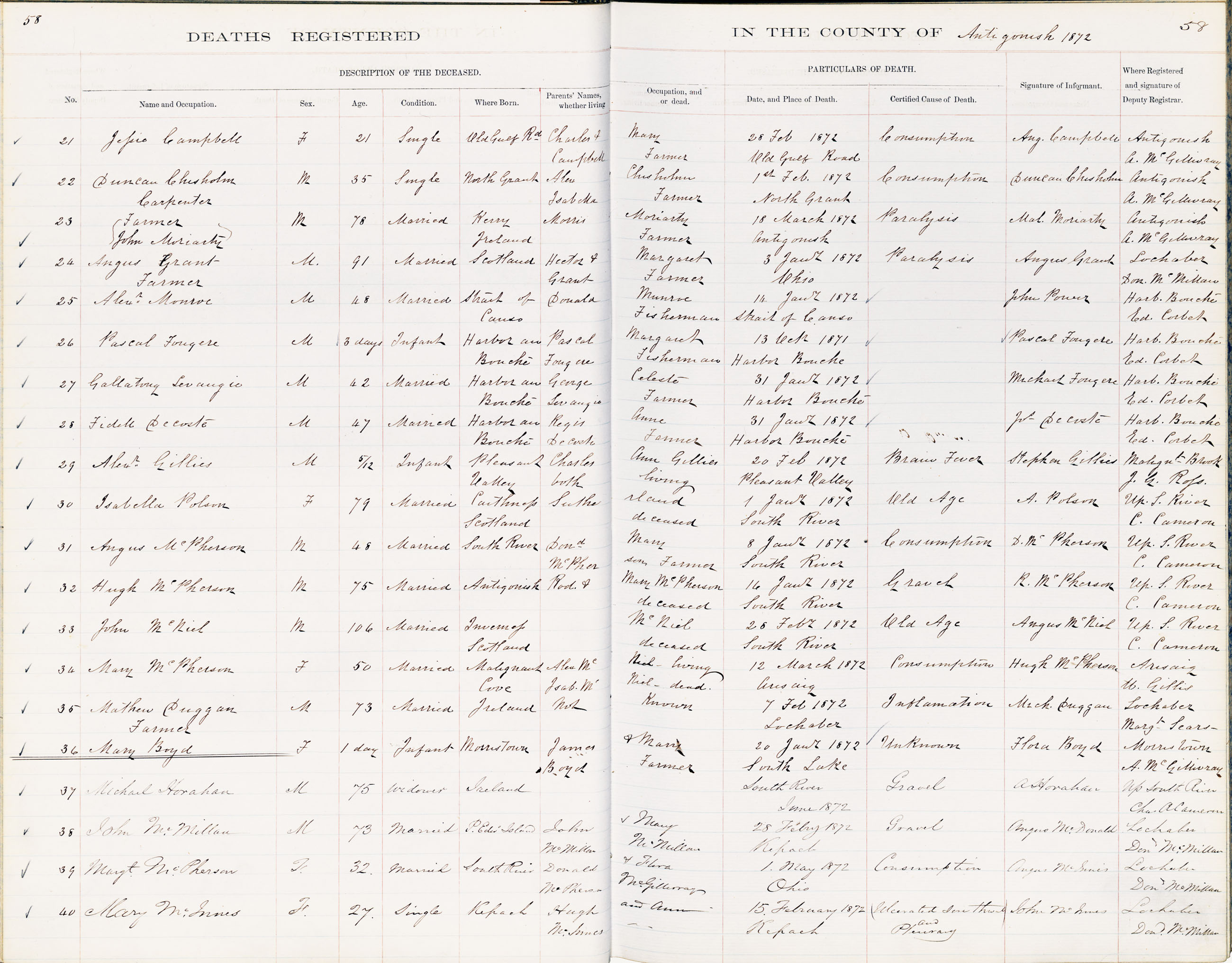 Death Registration: Year: 1872 book: 1802 page: 58 number: 21