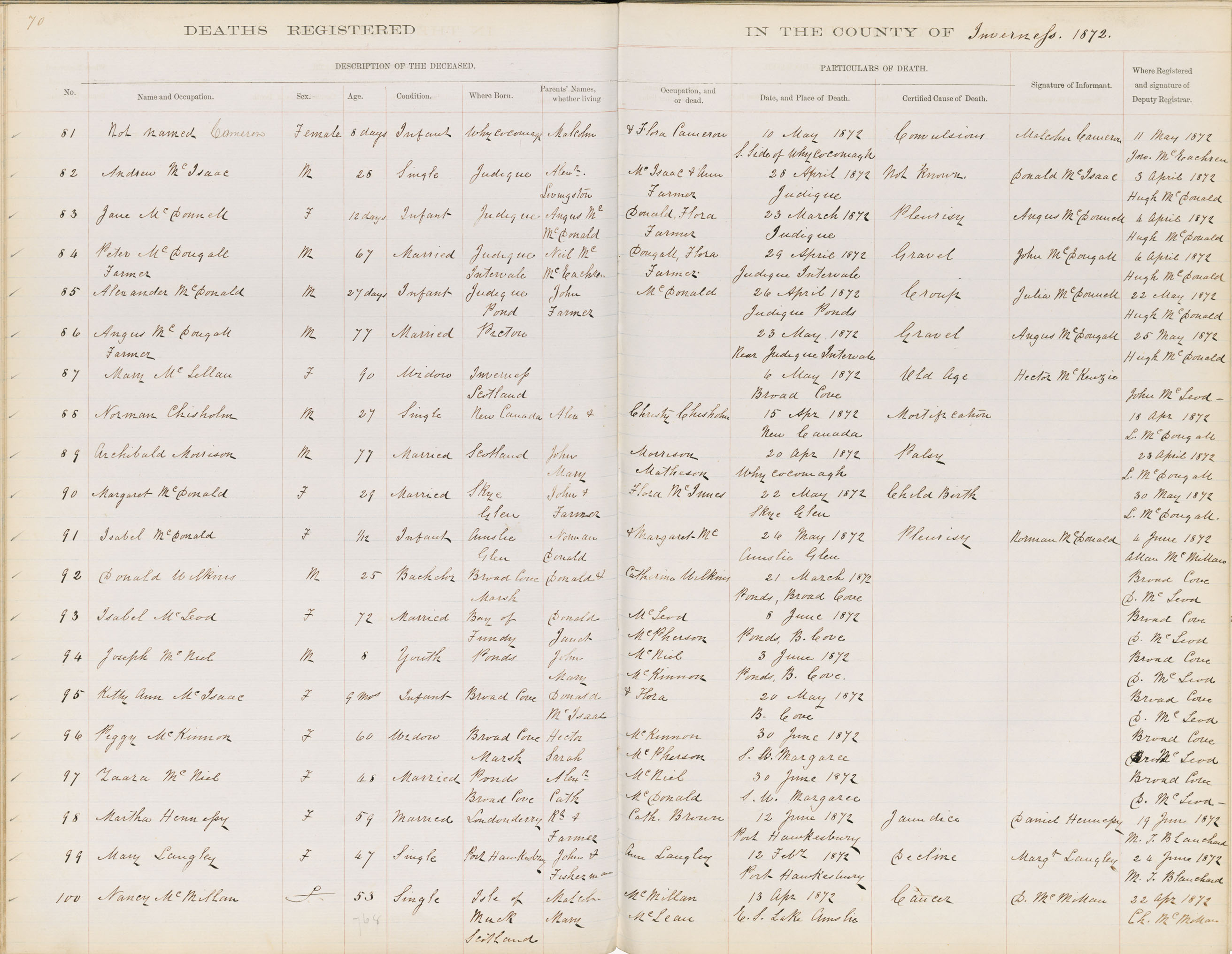 Death Registration: Year: 1872 book: 1810 page: 70 number: 81