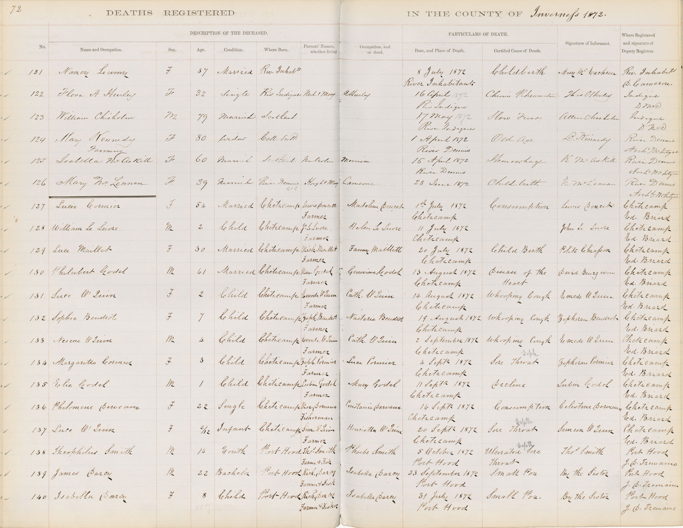 Death Registration: Year: 1872 book: 1810 page: 72 number: 121