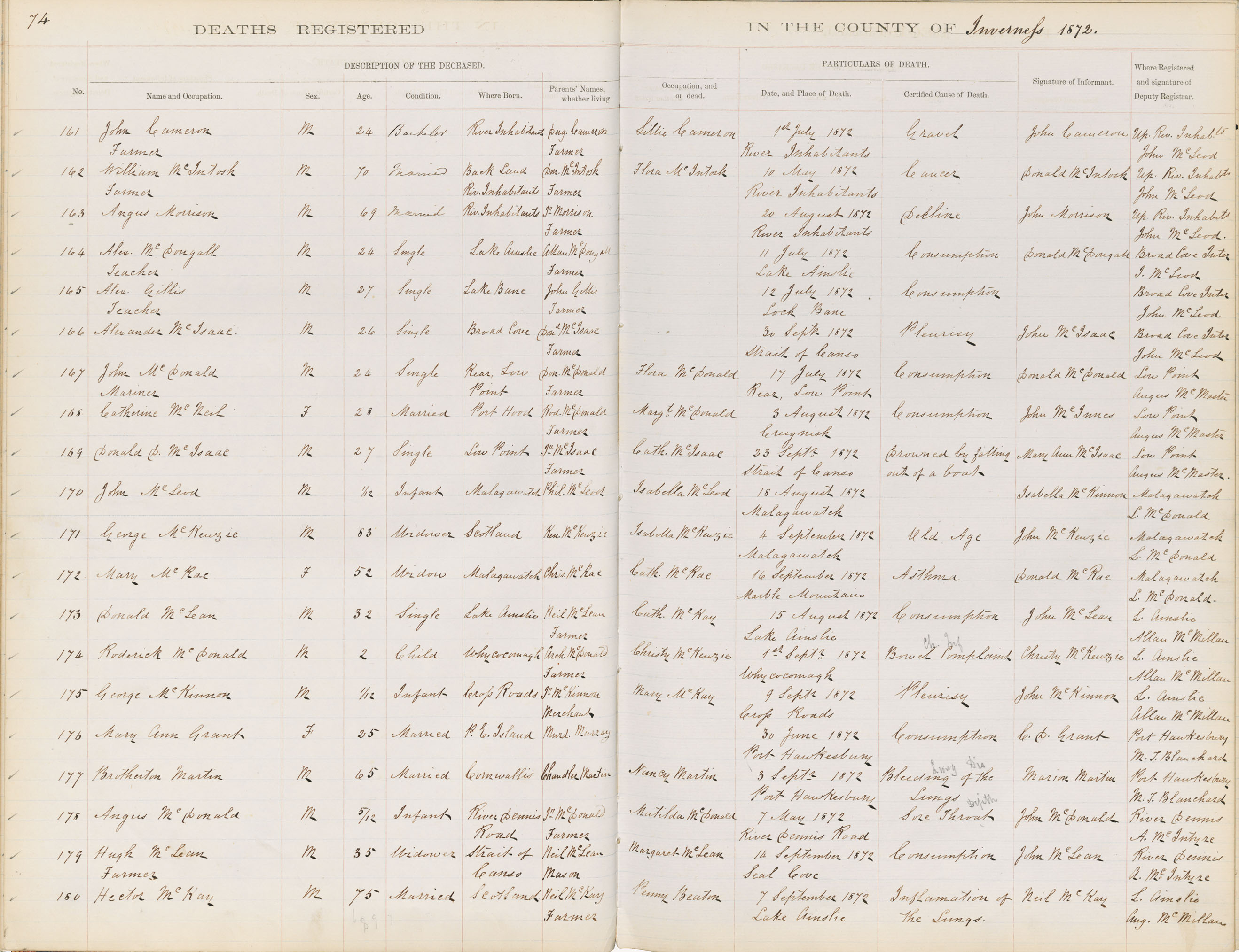 Death Registration: Year: 1872 book: 1810 page: 74 number: 161