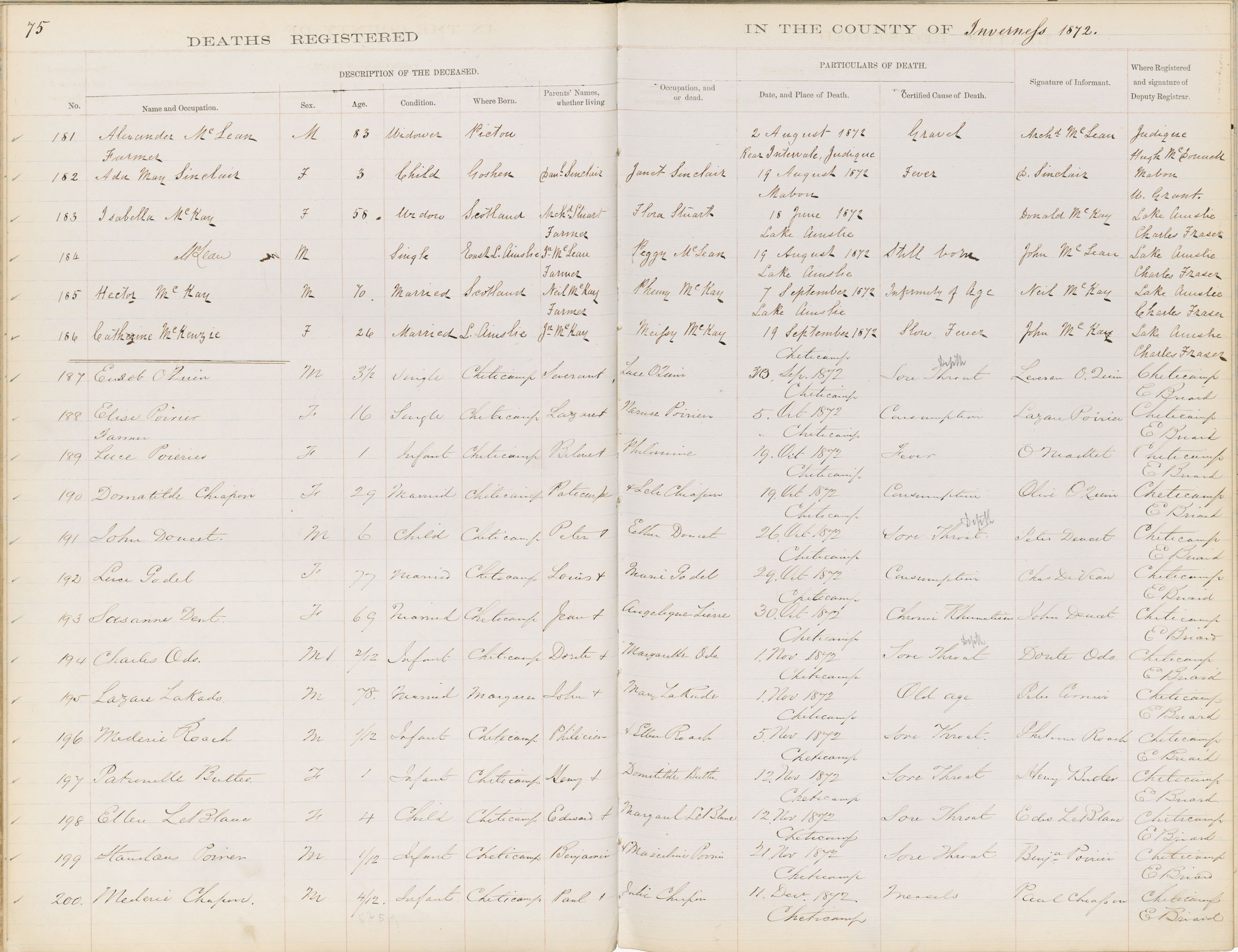 Death Registration: Year: 1872 book: 1810 page: 75 number: 181