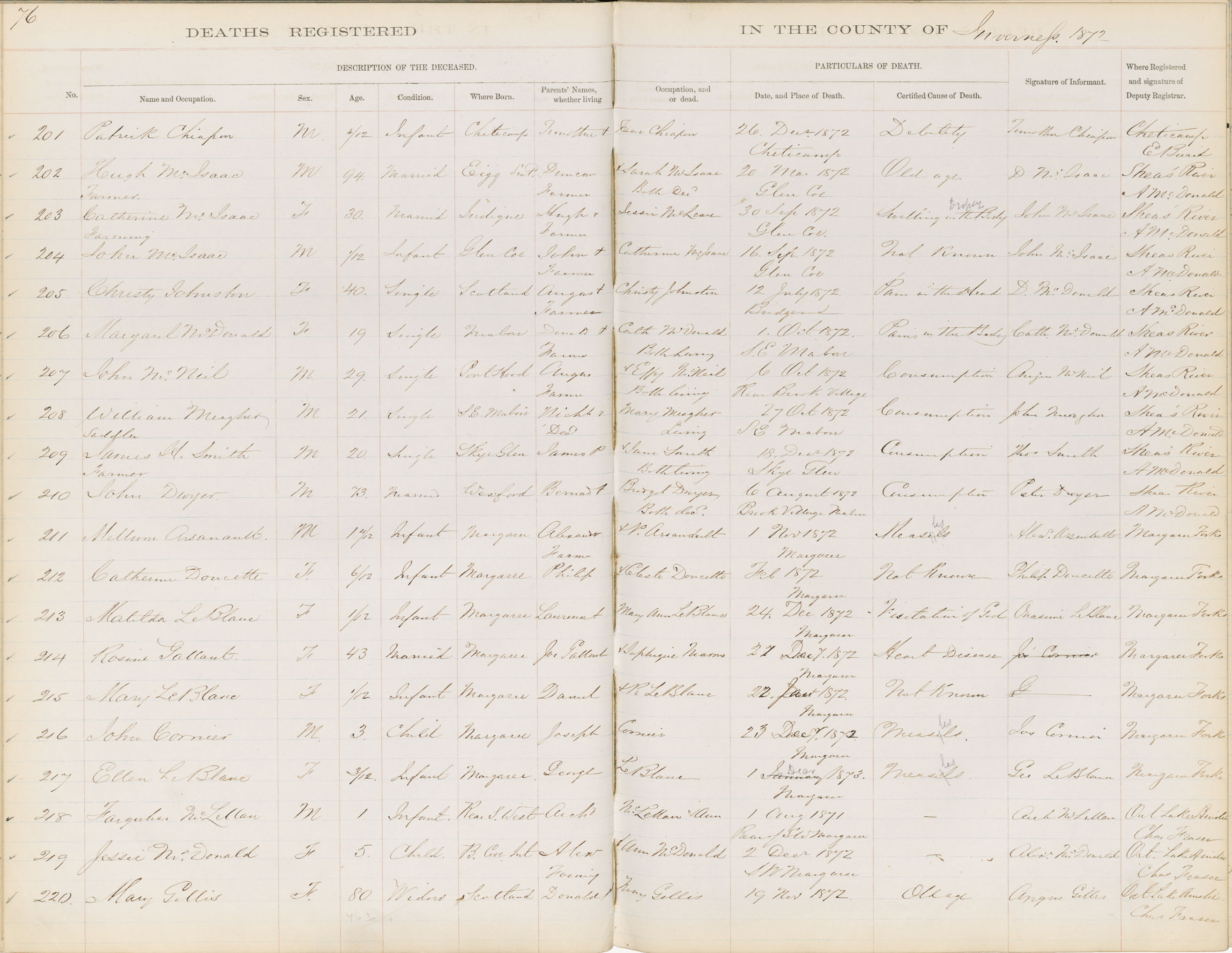 Death Registration: Year: 1872 book: 1810 page: 76 number: 201