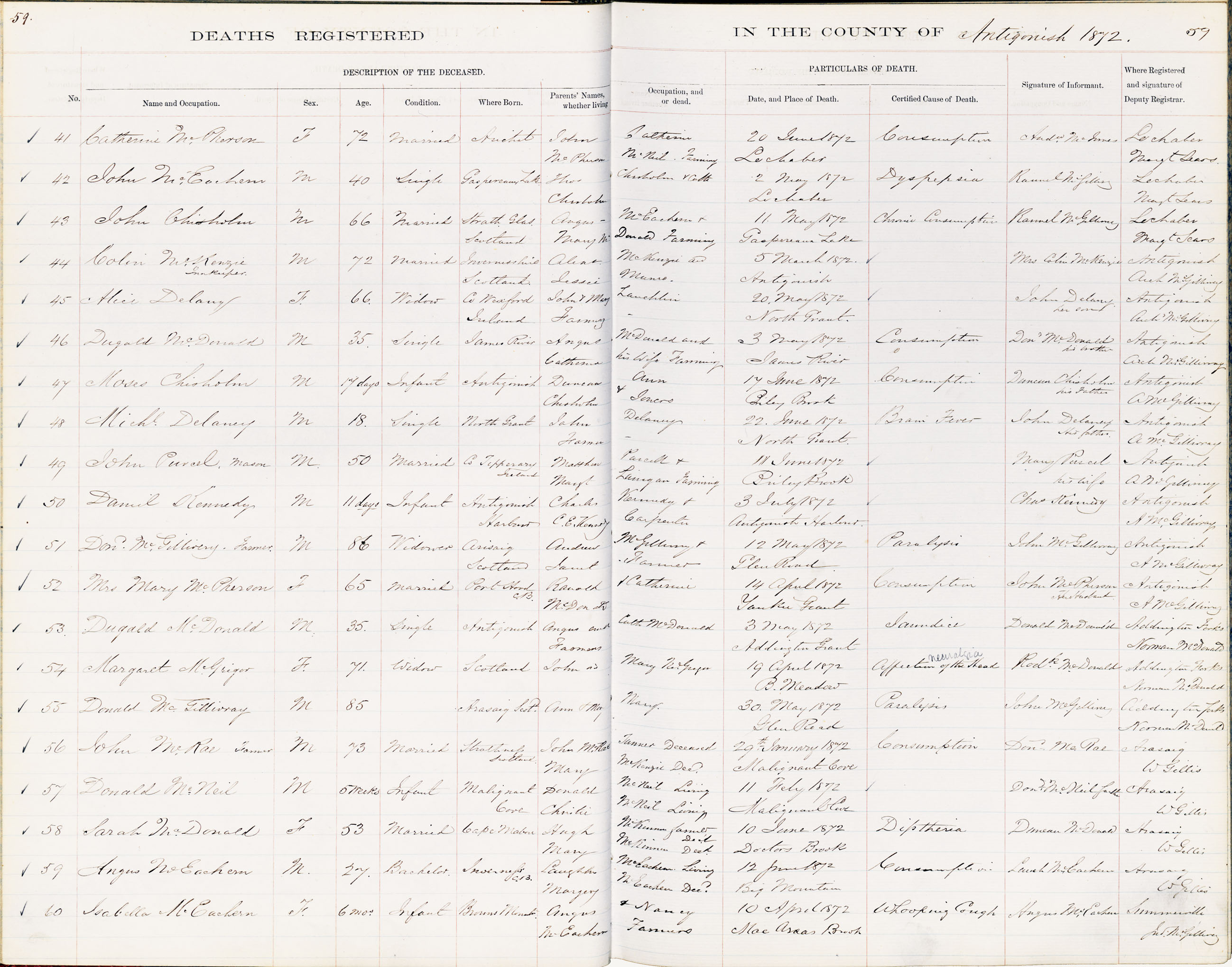 Death Registration: Year: 1872 book: 1802 page: 59 number: 41