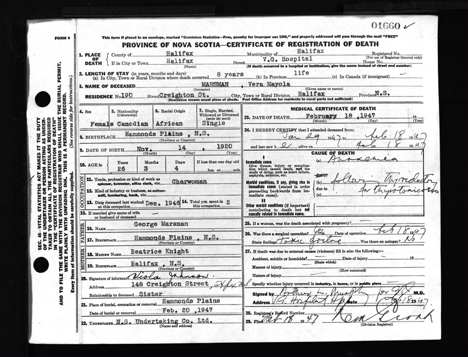 Female Death Registration: Year: 1947 number: 1660
