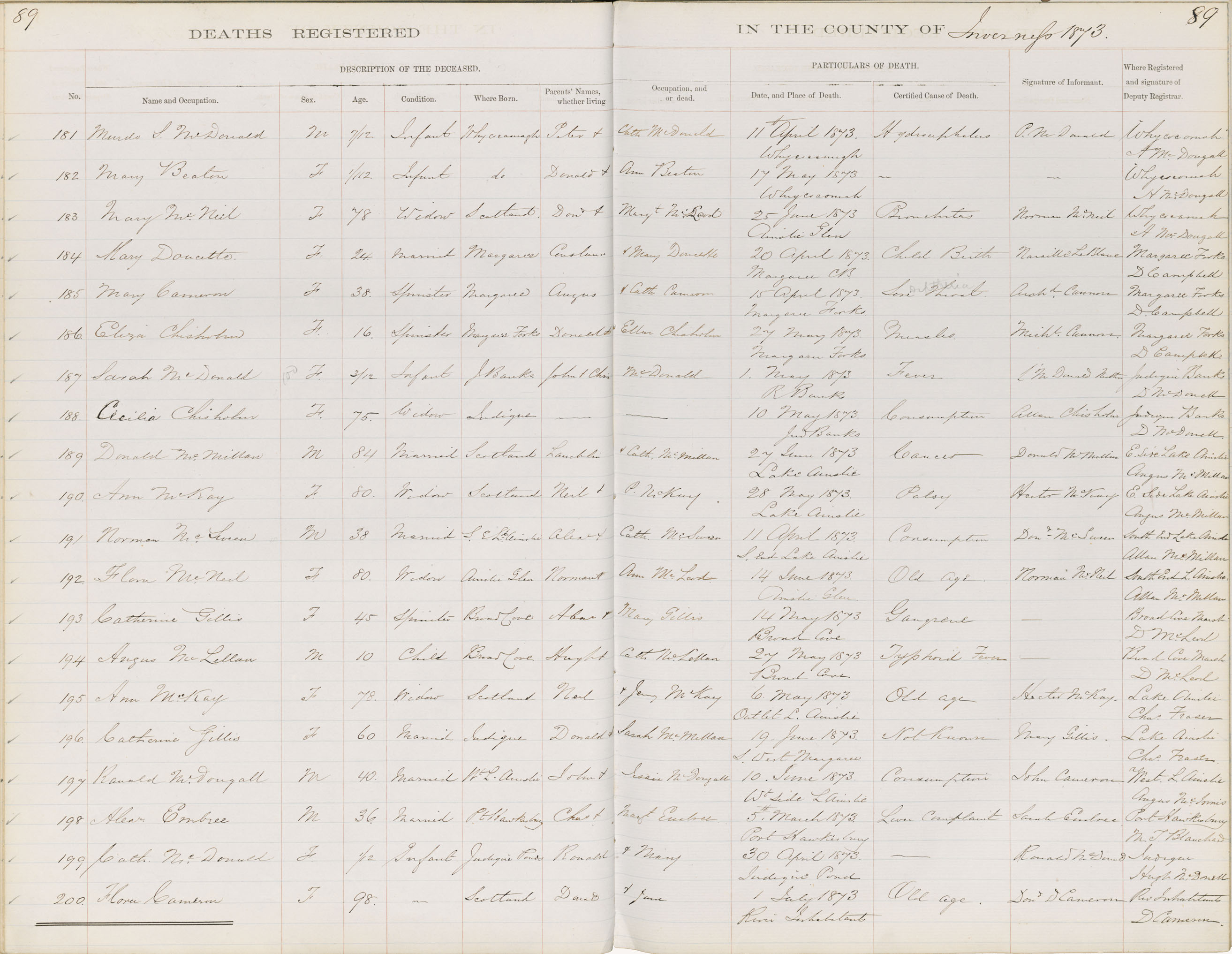 Death Registration: Year: 1873 book: 1810 page: 89 number: 200