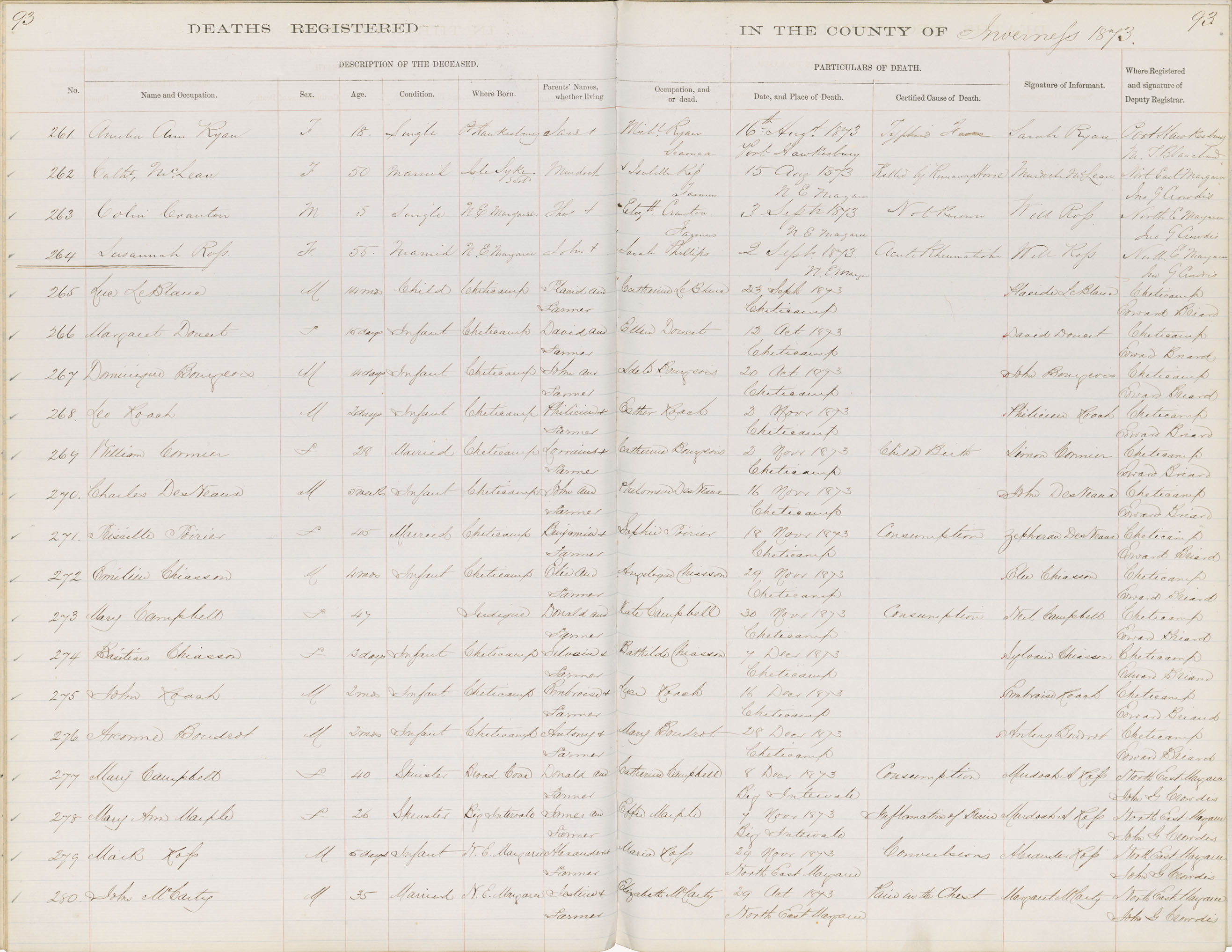 Death Registration: Year: 1873 book: 1810 page: 93 number: 280