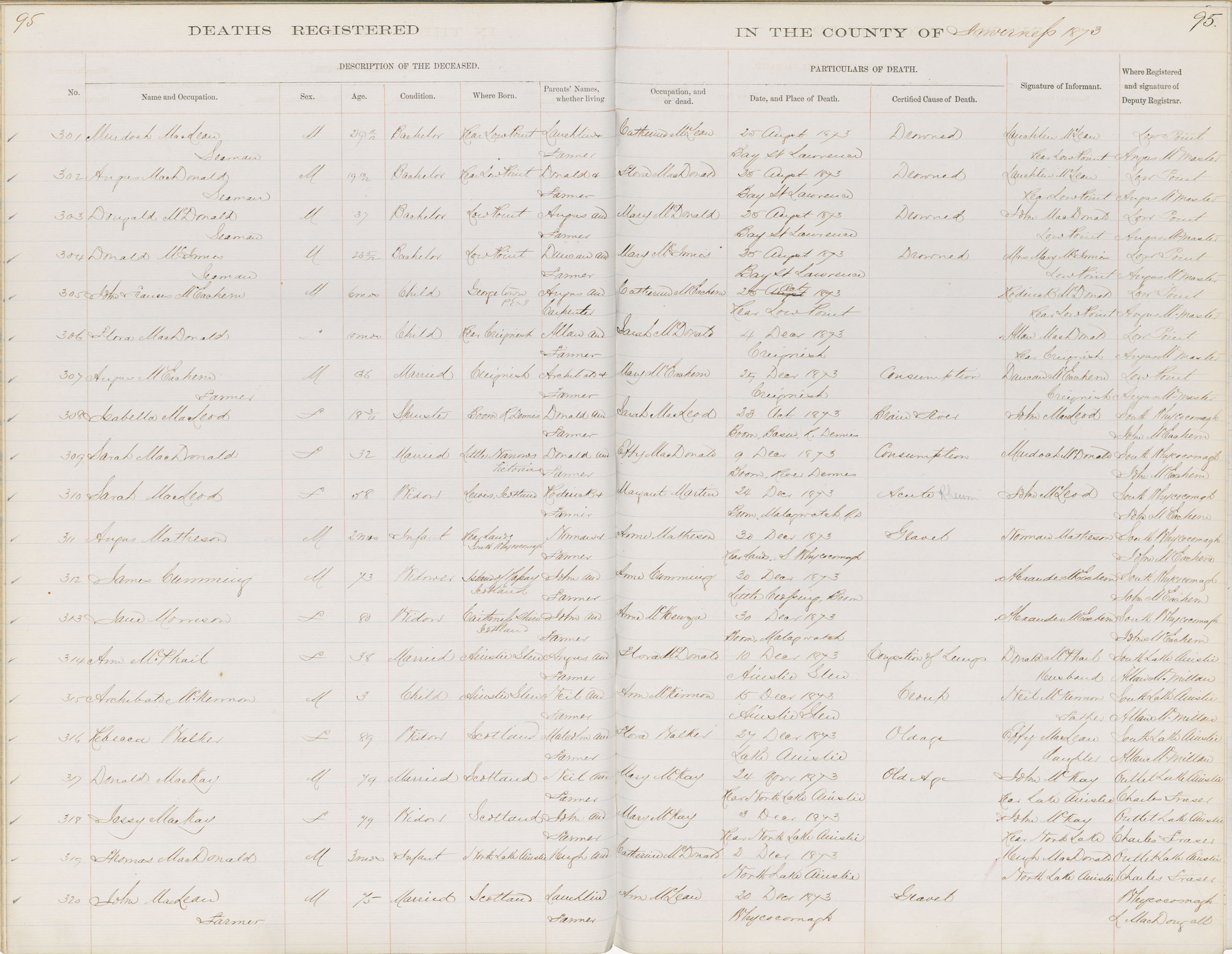 Death Registration: Year: 1873 book: 1810 page: 95 number: 309