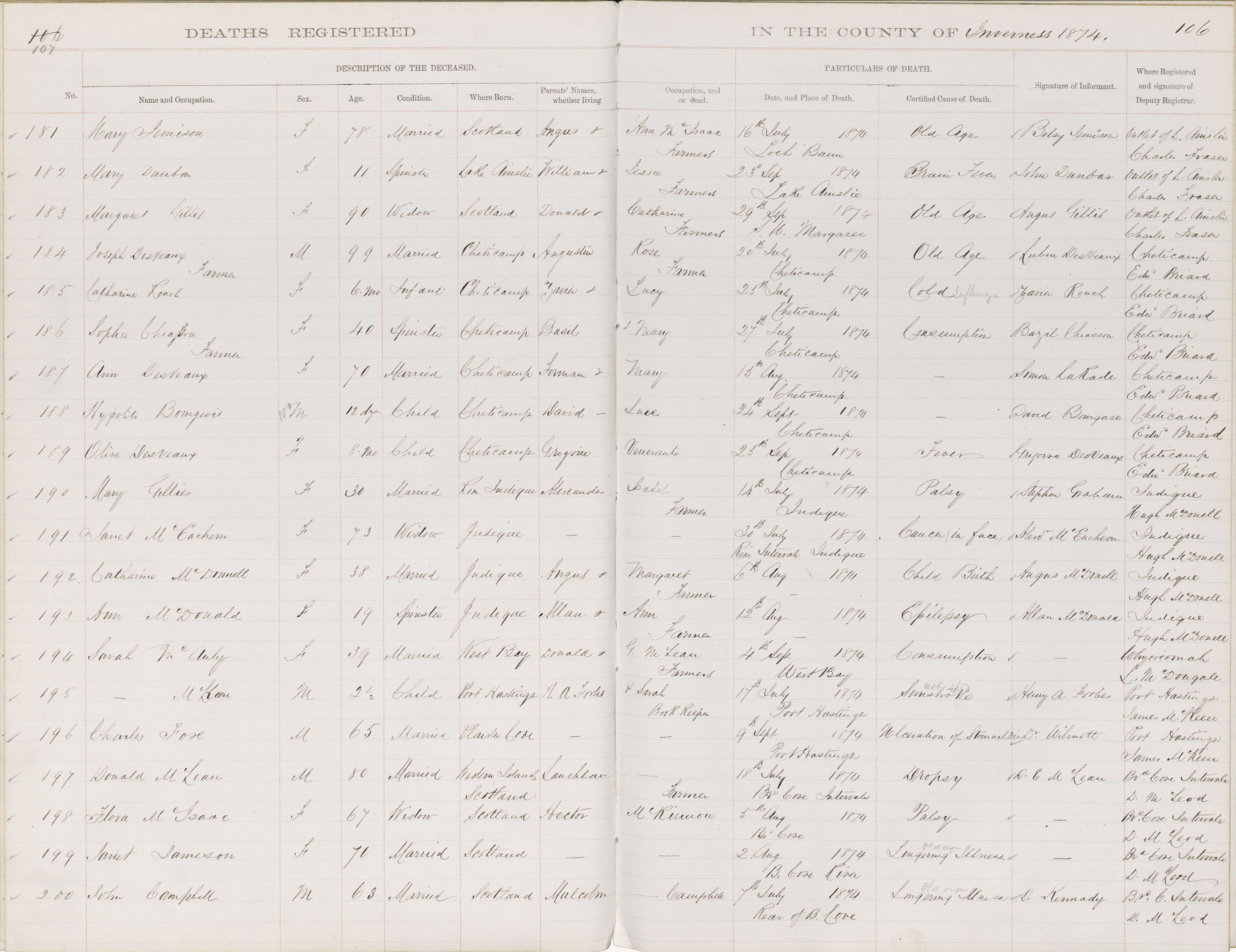 Death Registration: Year: 1874 book: 1810 page: 107 number: 181