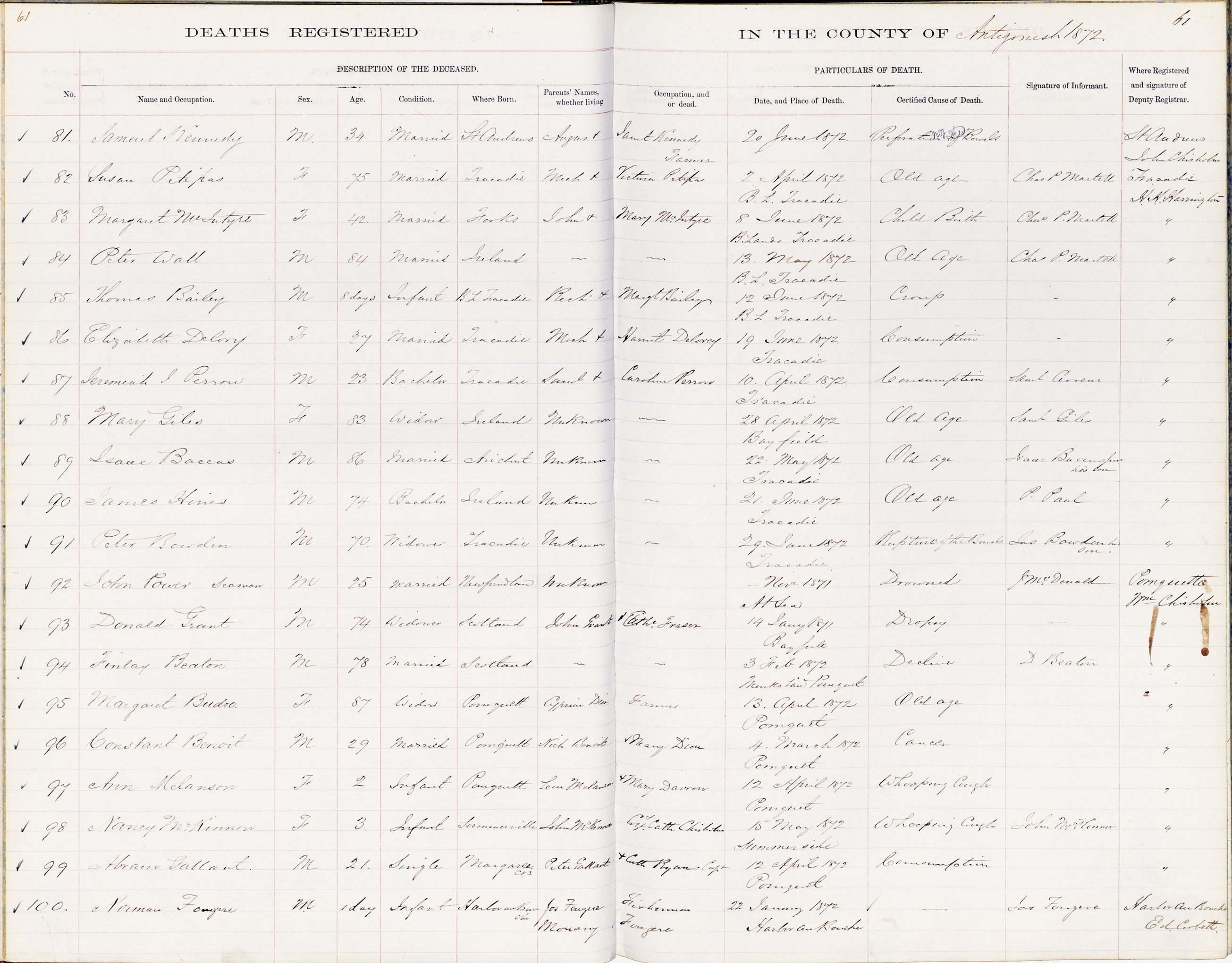 Death Registration: Year: 1872 book: 1802 page: 61 number: 100