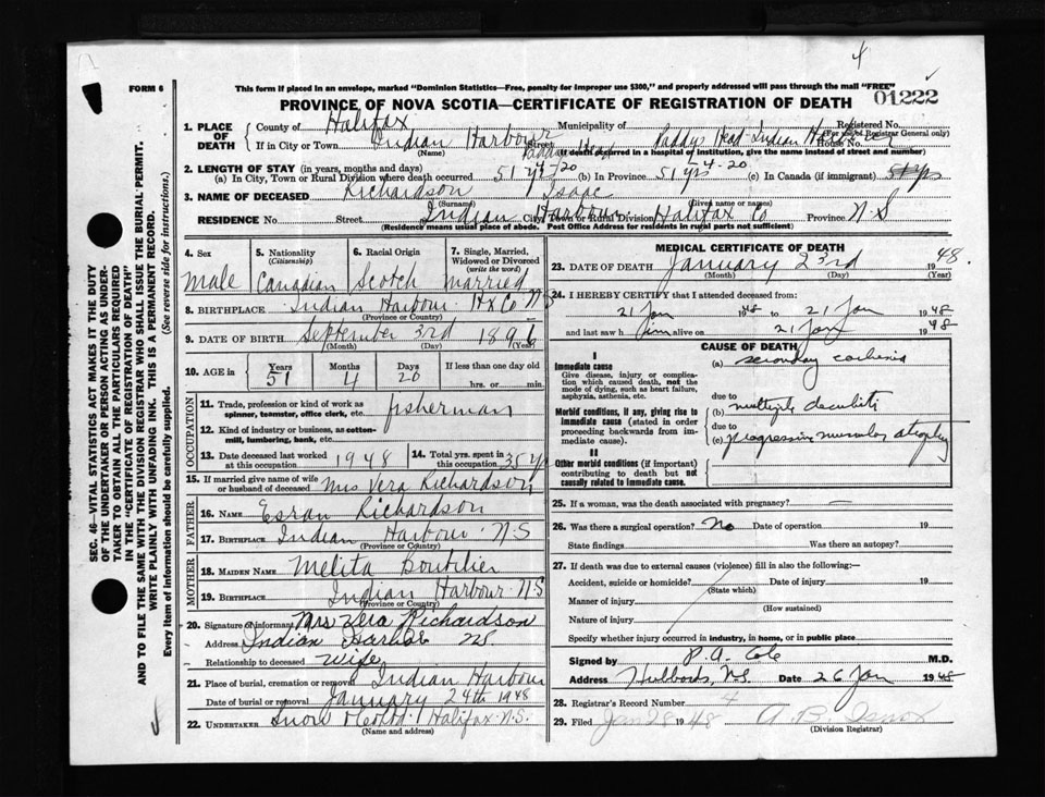 Male Death Registration: Year: 1948 number: 1222