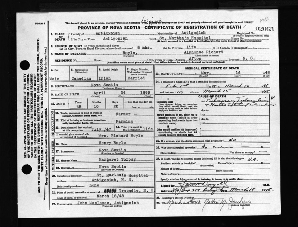 Male Death Registration: Year: 1948 number: 2063