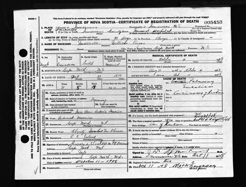 Nova Scotia Archives — https://archives.novascotia.ca/vital-statistics/death/?ID=354531