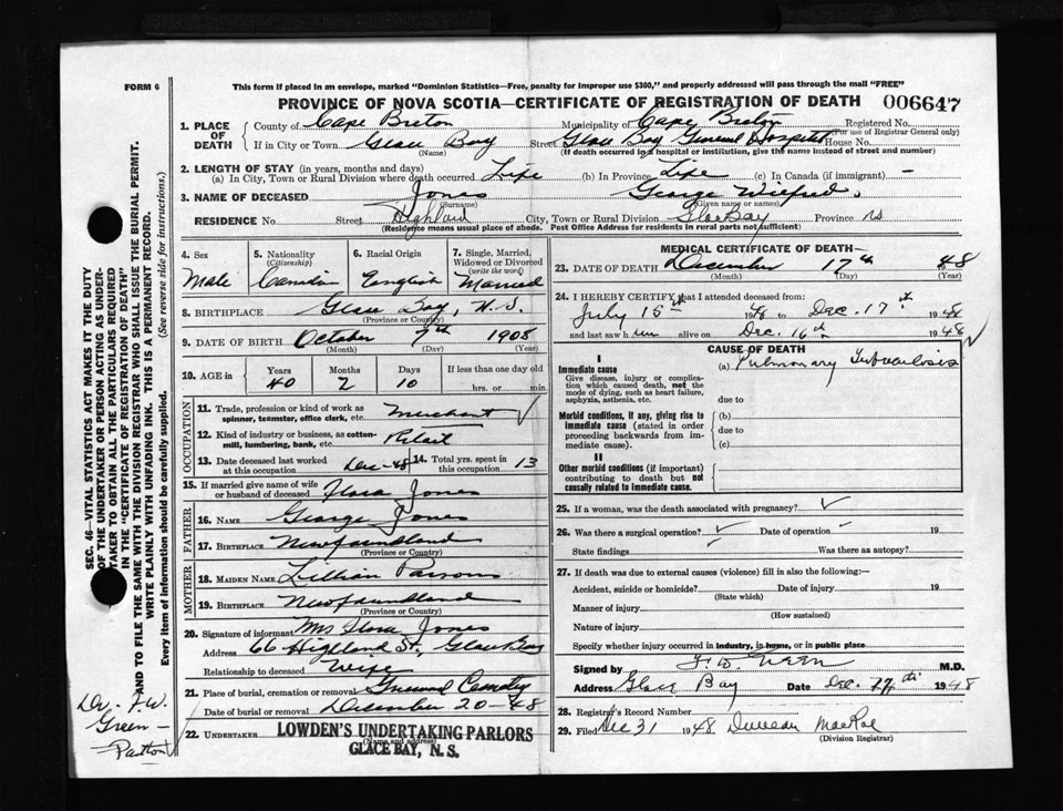 Male Death Registration: Year: 1948 number: 6647