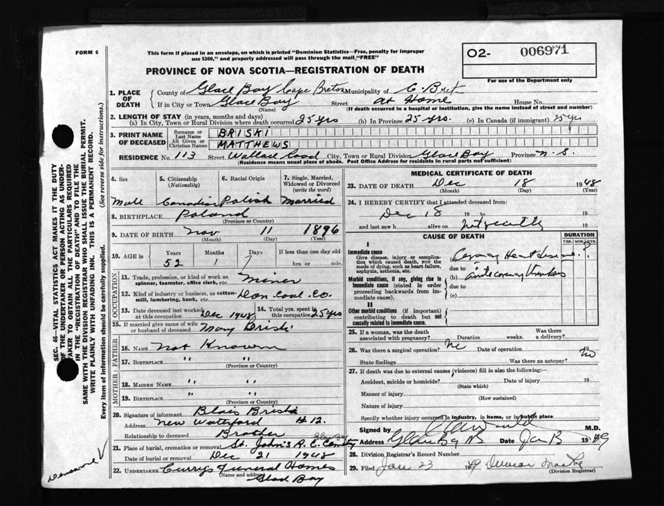 Male Death Registration: Year: 1948 number: 6971