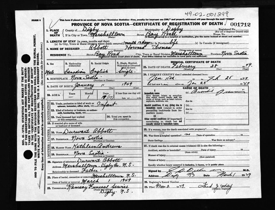 Male Death Registration: Year: 1949 number: 1712