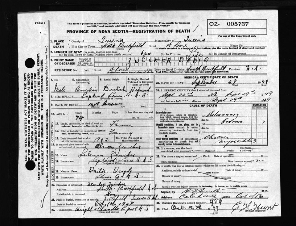 Male Death Registration: Year: 1949 number: 5737