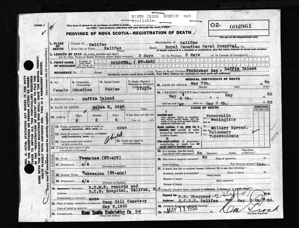 Note: Father Teemotee Mother Tukeealoo from BaffinIsland