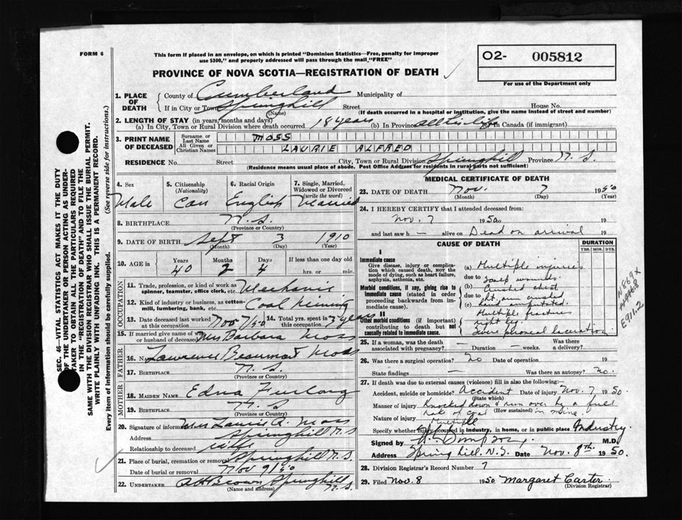 Male Death Registration: Year: 1950 number: 5812