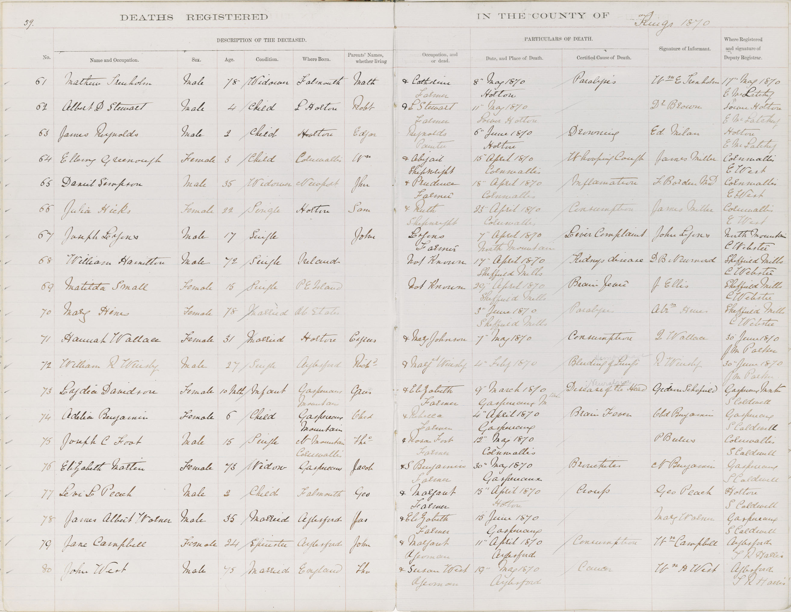 Death Registration: Year: 1870 book: 1811 page: 59 number: 80