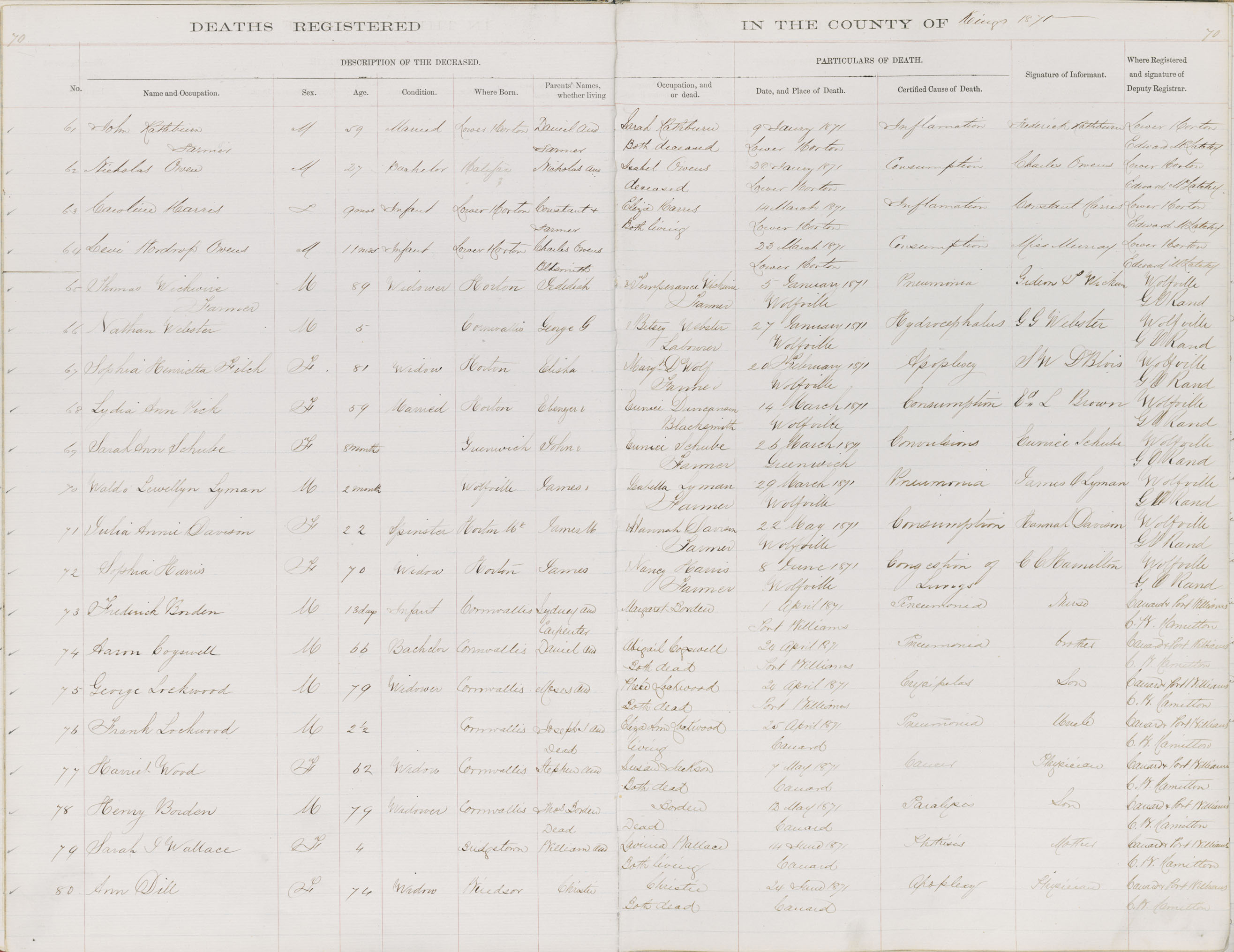 Death Registration: Year: 1871 book: 1811 page: 70 number: 61