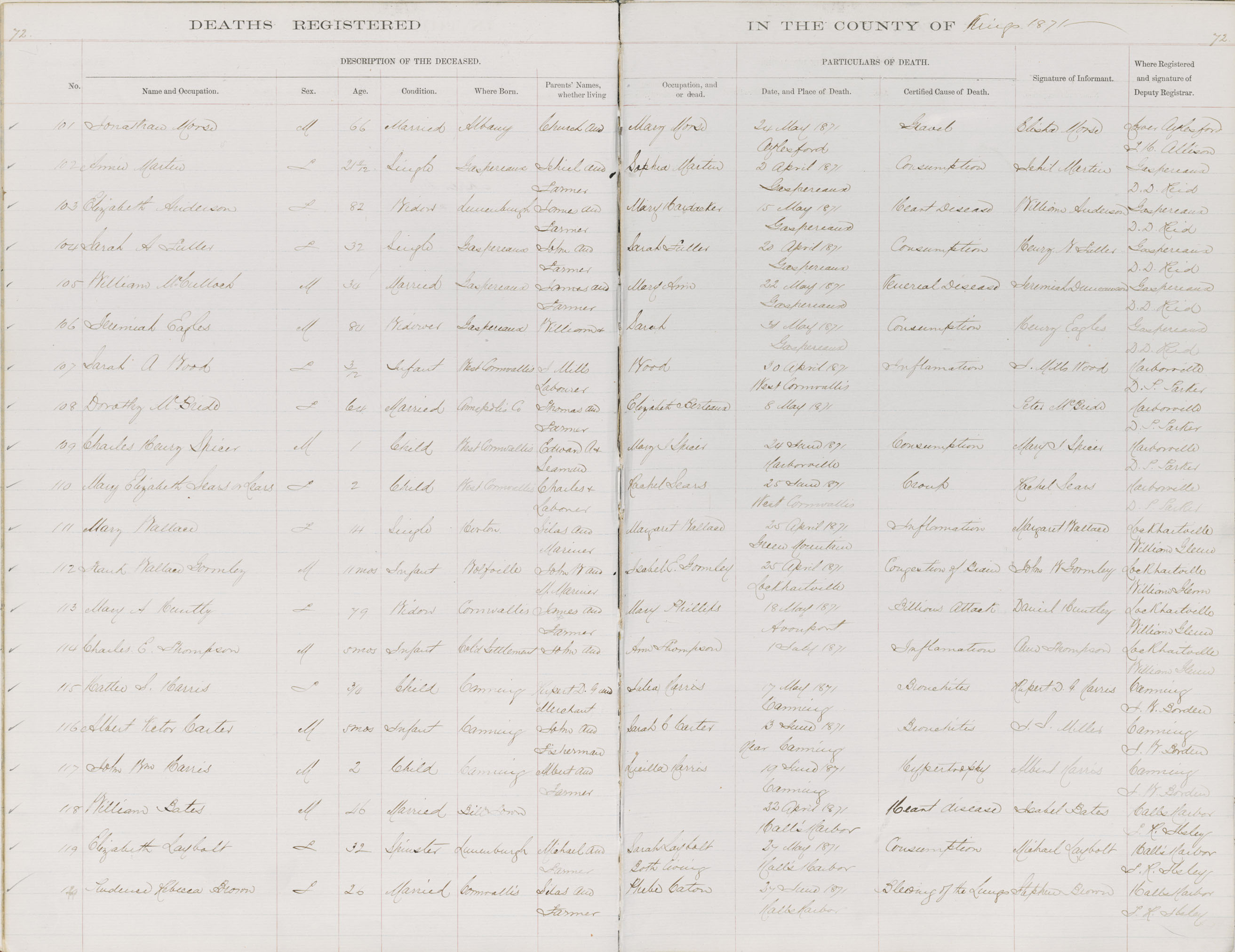 Death Registration: Year: 1871 book: 1811 page: 72 number: 101