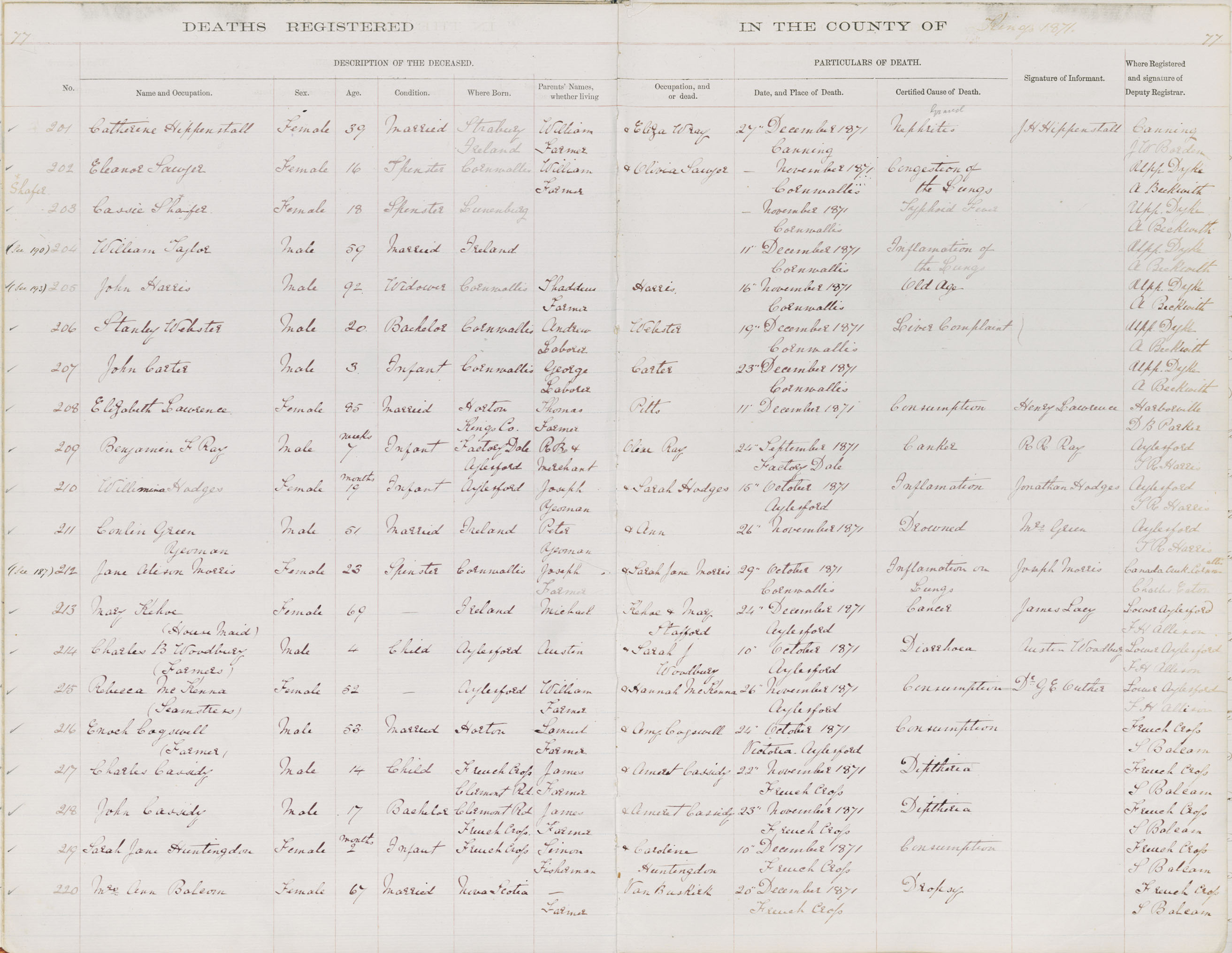 Death Registration: Year: 1871 book: 1811 page: 77 number: 201