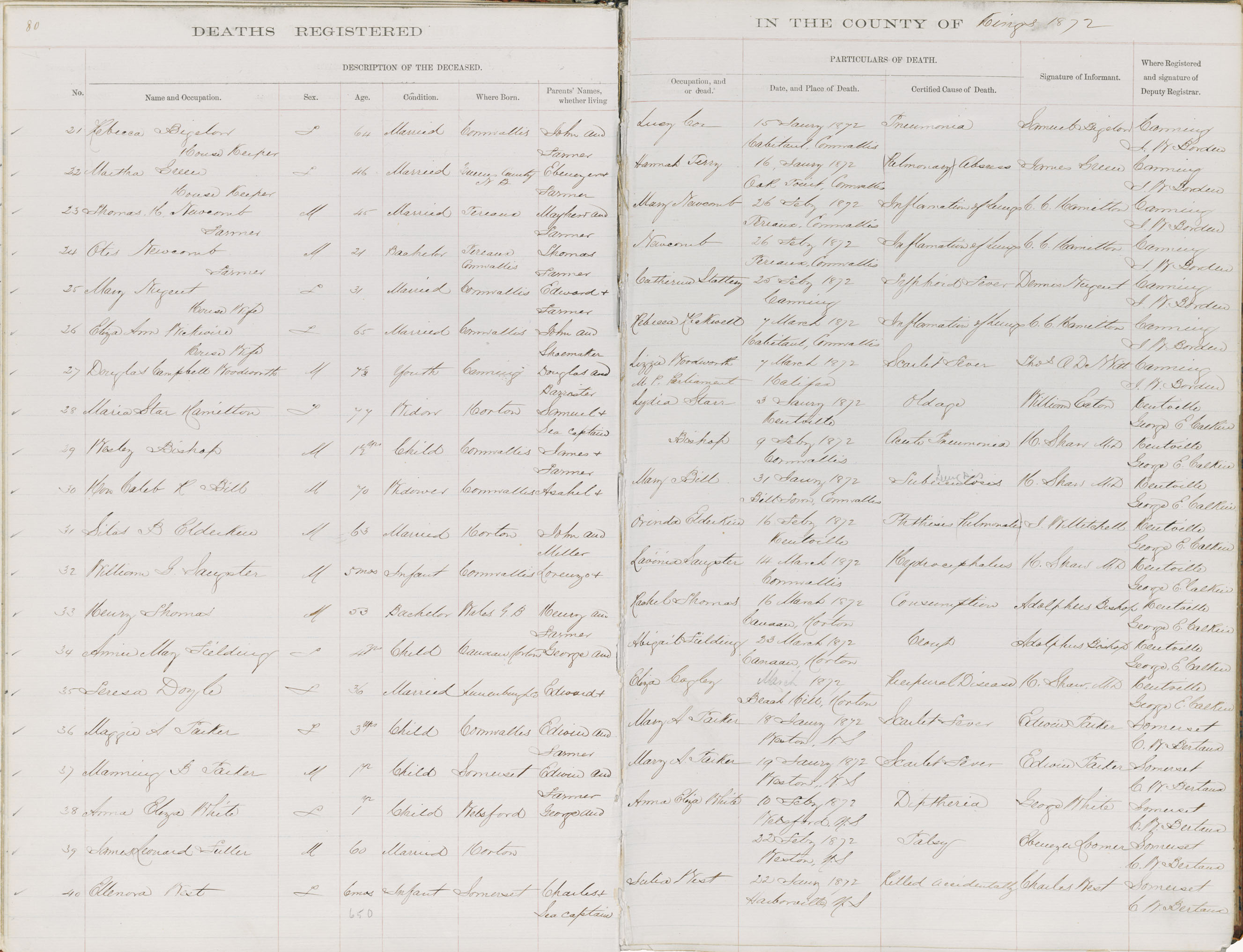Death Registration: Year: 1872 book: 1811 page: 80 number: 21