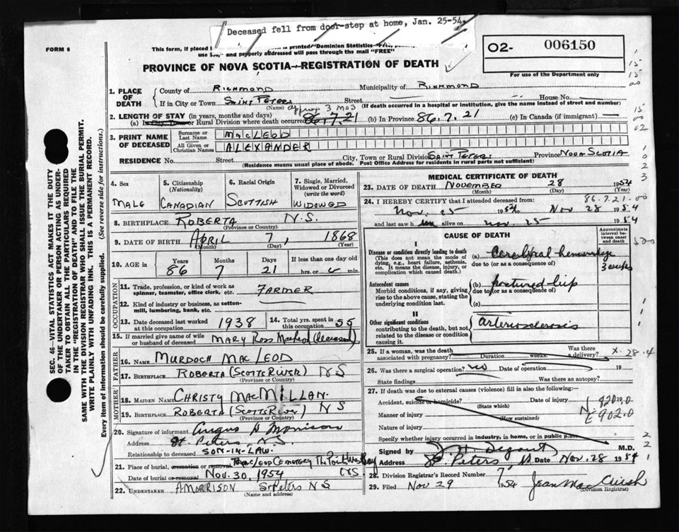 Nova Scotia Archives — https://archives.novascotia.ca/vital-statistics/death/?ID=391020