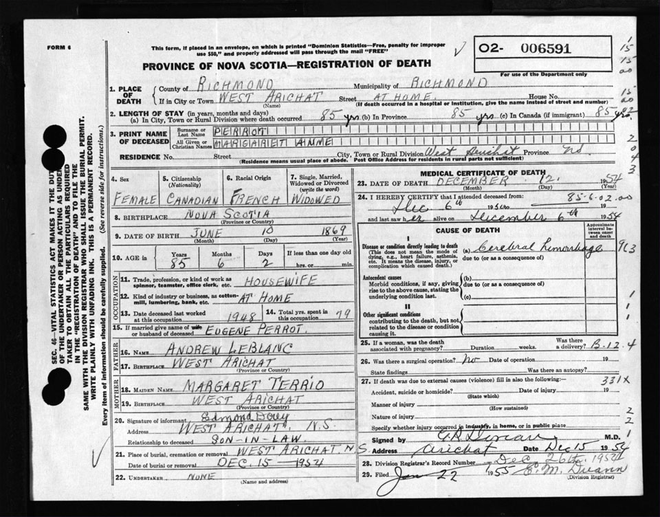 Nova Scotia Archives — https://archives.novascotia.ca/vital-statistics/death/?ID=391461