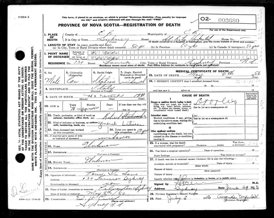 Nova Scotia Archives — https://archives.novascotia.ca/vital-statistics/death/?ID=400318