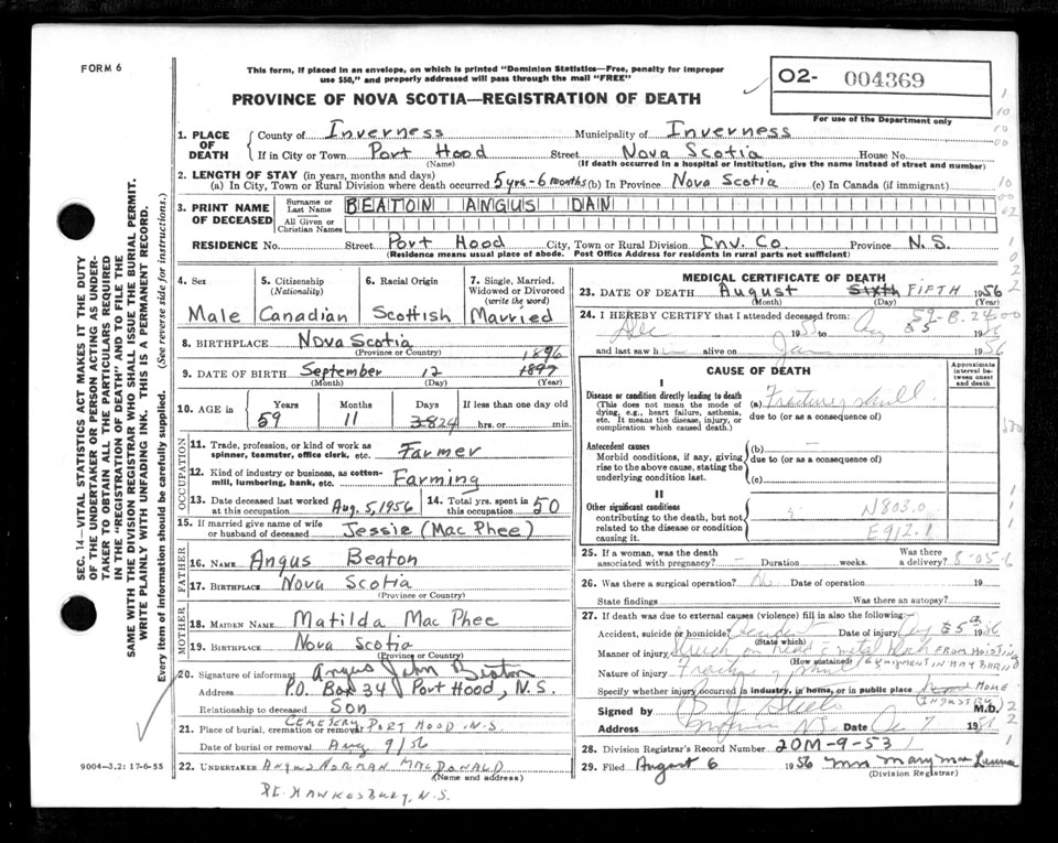 Nova Scotia Archives — https://archives.novascotia.ca/vital-statistics/death/?ID=401006
