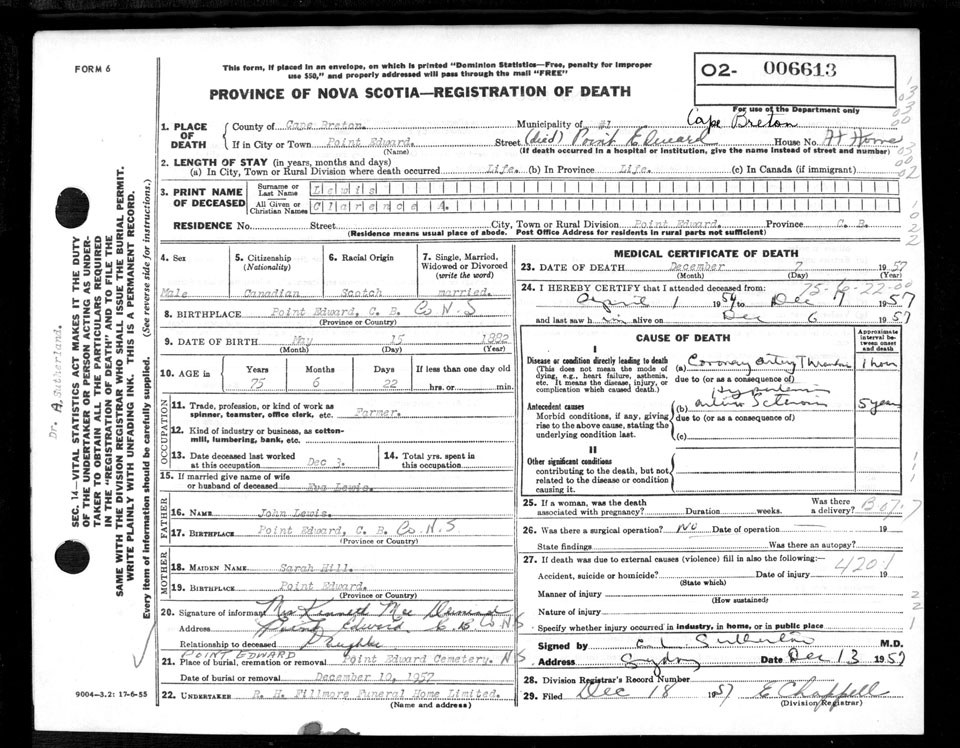 Nova Scotia Archives — https://archives.novascotia.ca/vital-statistics/death/?ID=409015