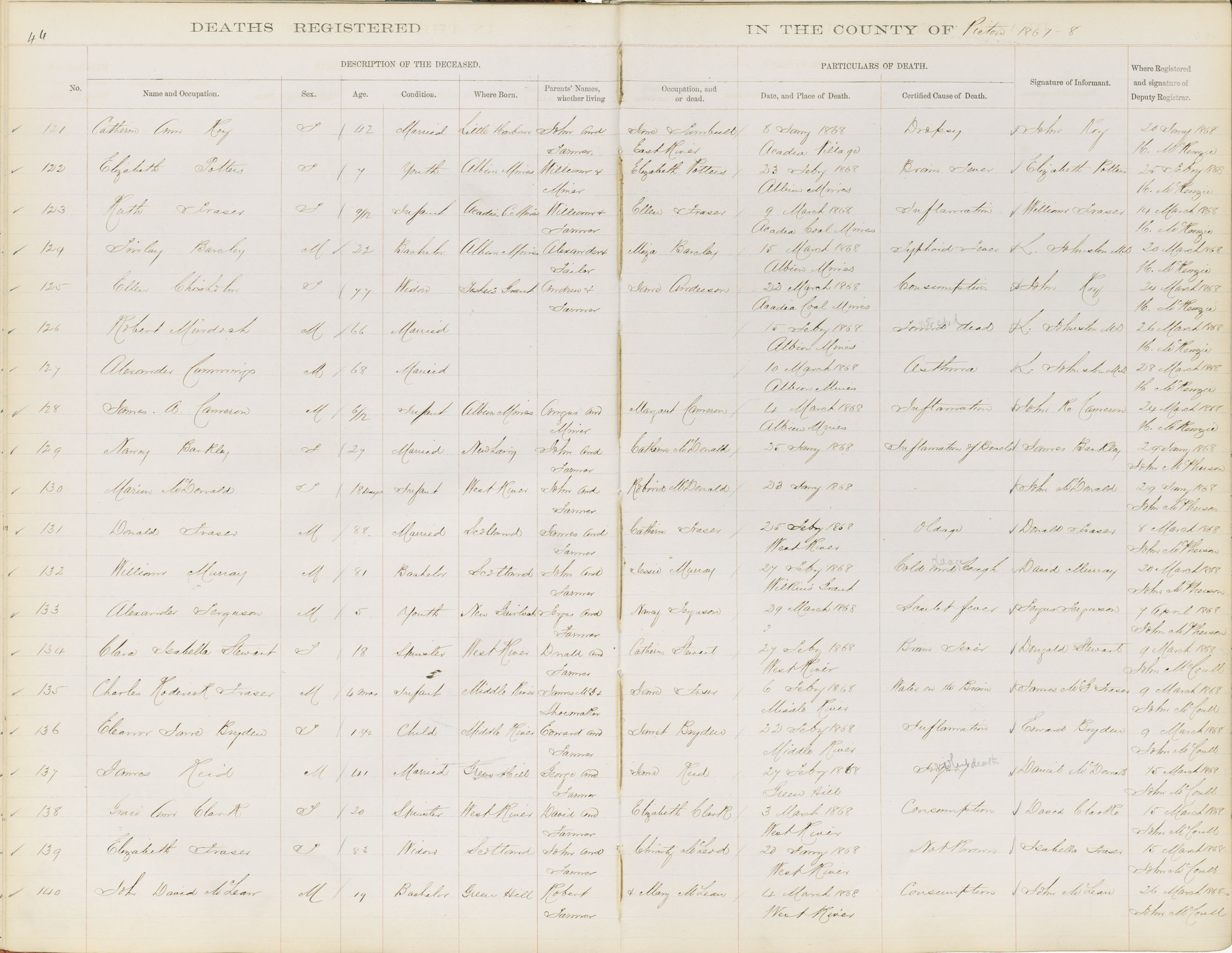 Death Registration: Year: 1868 book: 1813 page: 44 number: 121