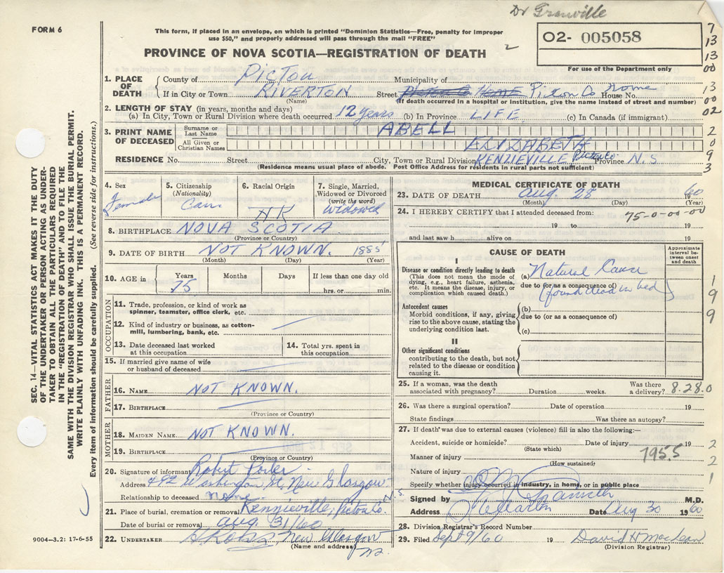 Nova Scotia Archives — https://archives.novascotia.ca/vital-statistics/death/?ID=425977