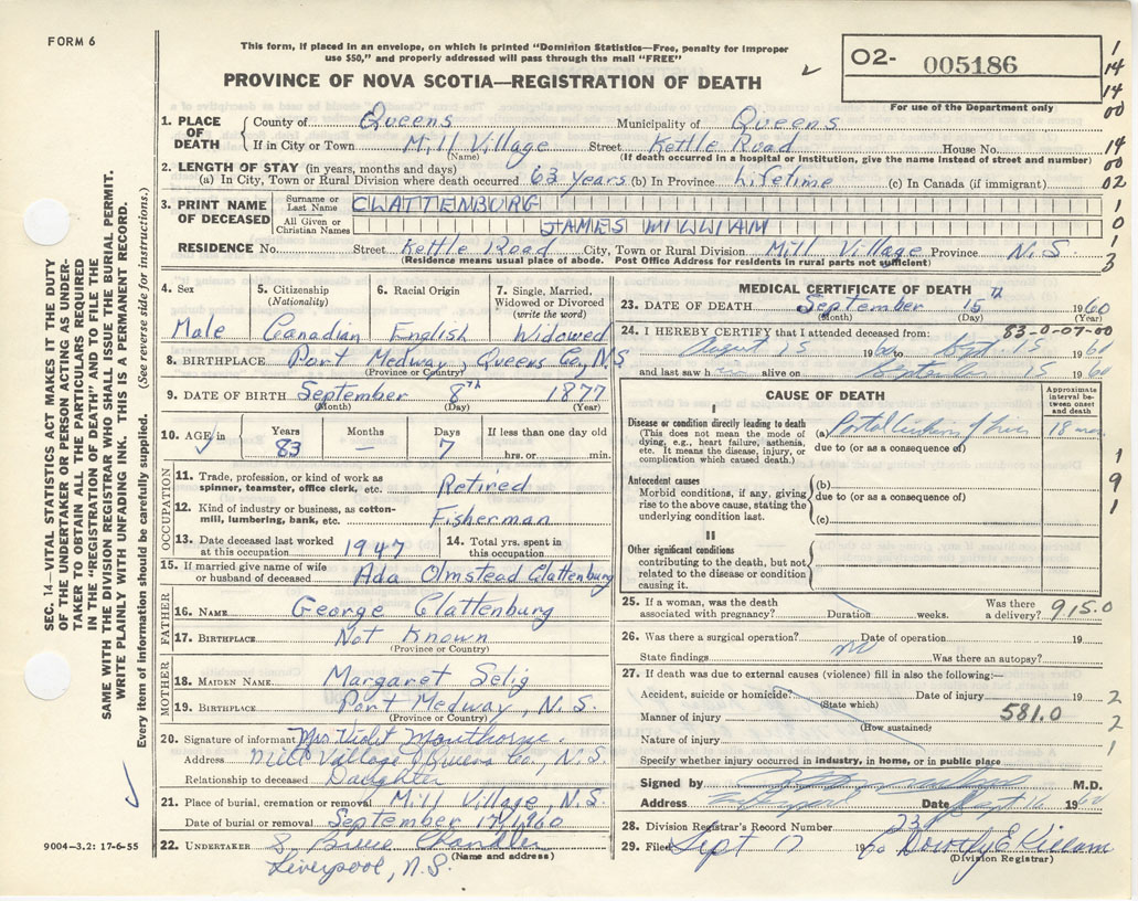 Death Registration: Year: 1960 number: 5186