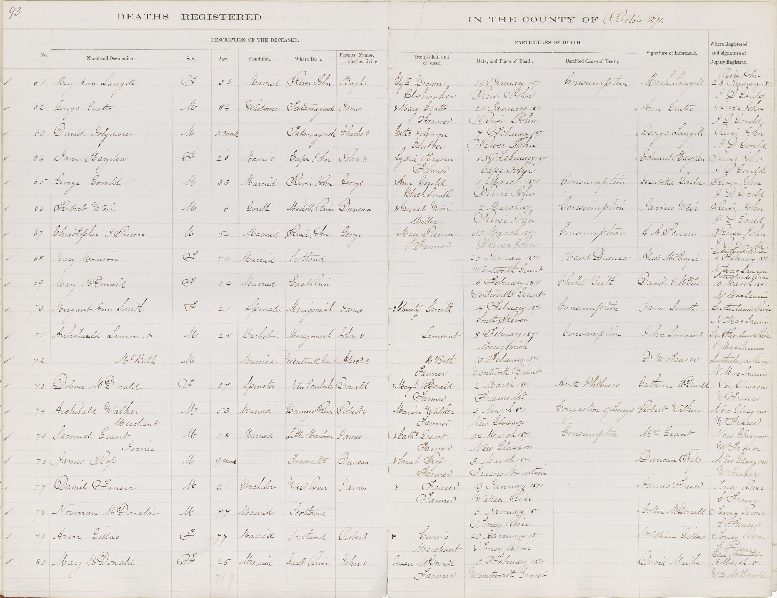 Death Registration: Year: 1871 book: 1813 page: 93 number: 61