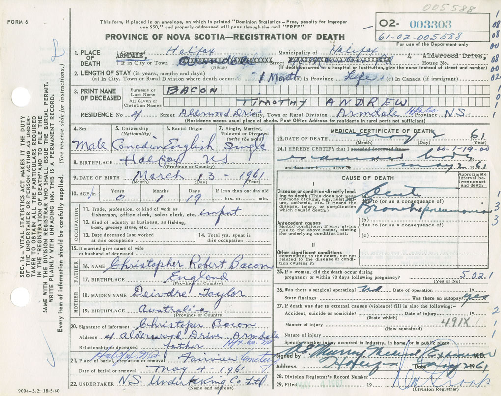 Death Registration: Year: 1961 number: 3303