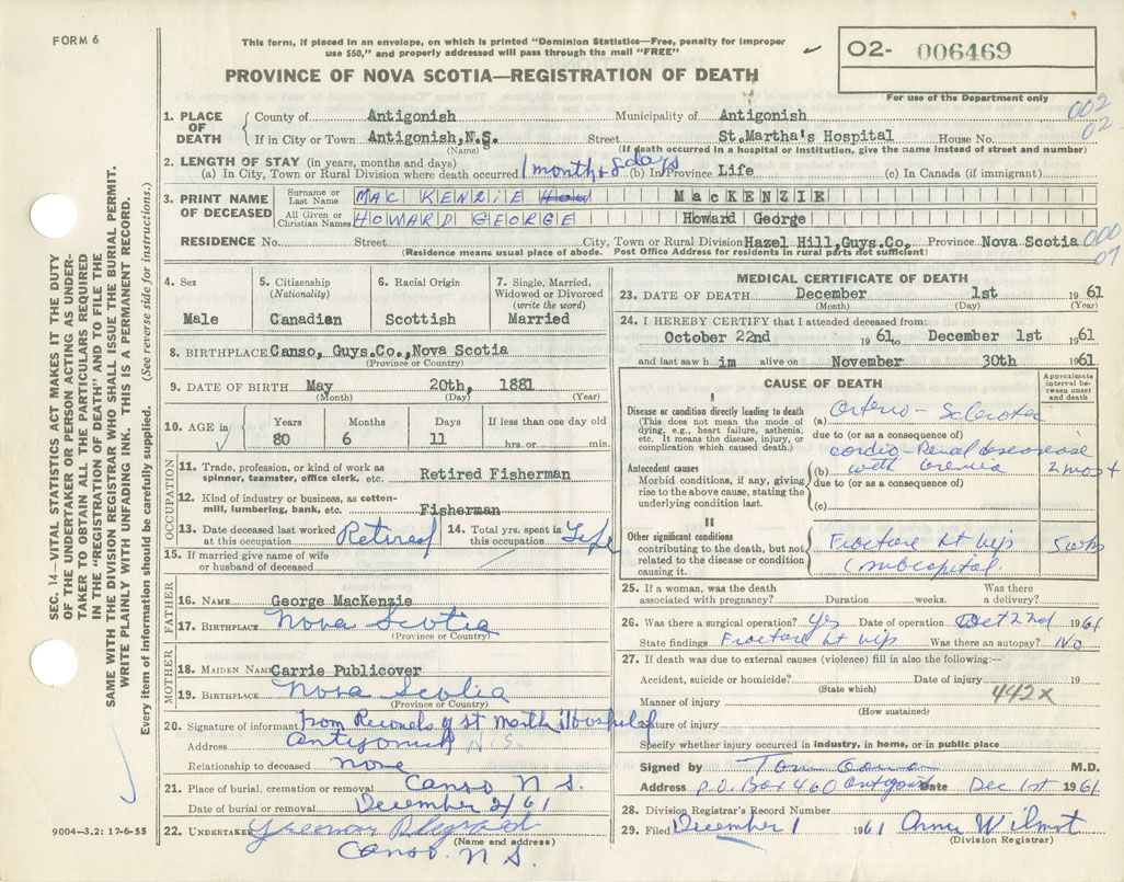 Death Registration: Year: 1961 number: 6469