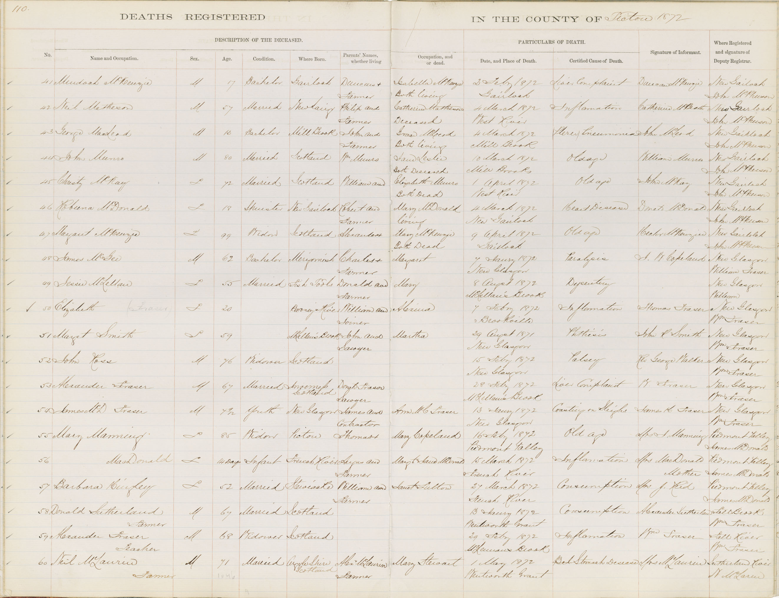 Death Registration: Year: 1872 book: 1813 page: 110 number: 60