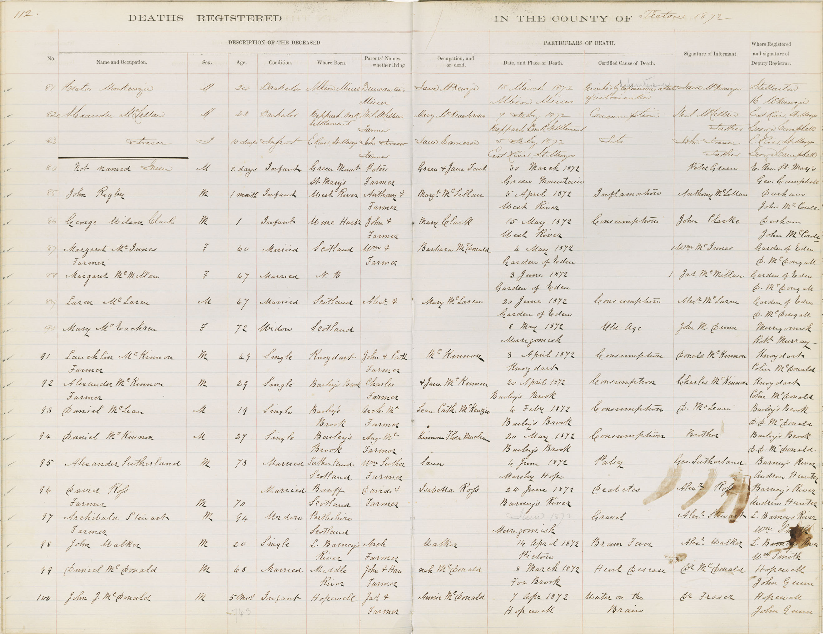 Death Registration: Year: 1872 book: 1813 page: 112 number: 100