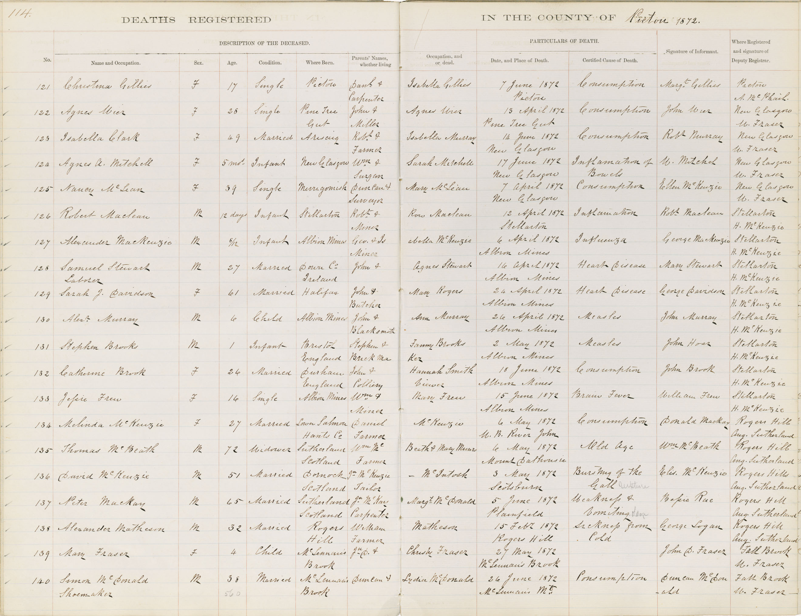 Death Registration: Year: 1872 book: 1813 page: 114 number: 140
