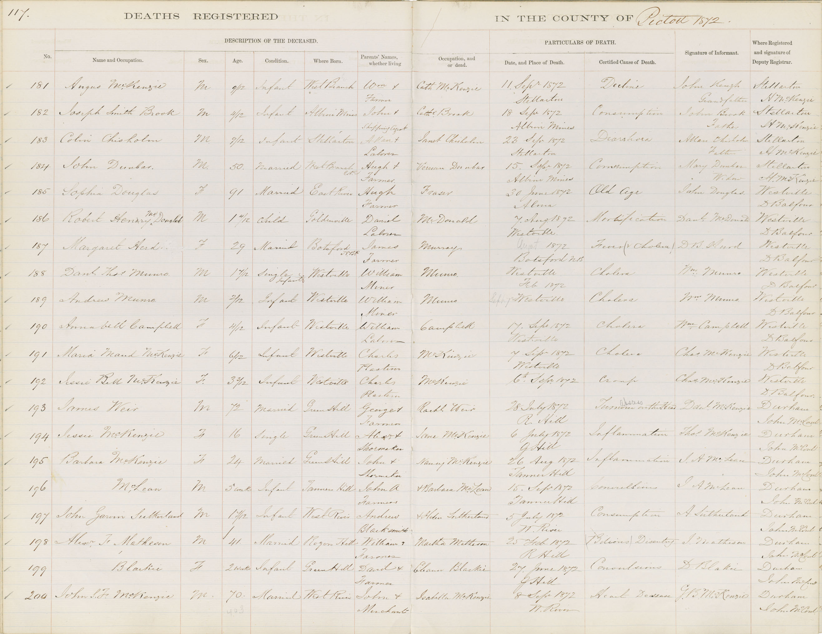 Death Registration: Year: 1872 book: 1813 page: 117 number: 200