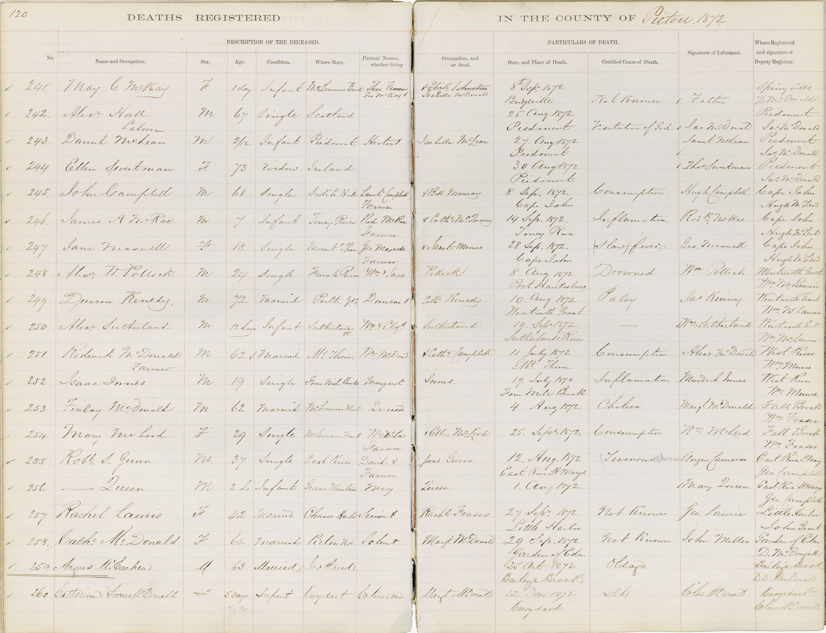 Death Registration: Year: 1872 book: 1813 page: 120 number: 260