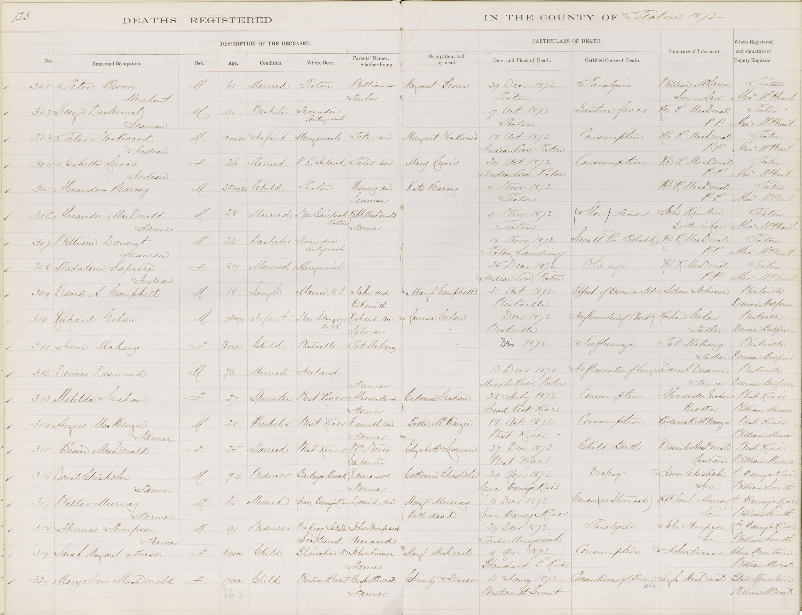 Death Registration: Year: 1872 book: 1813 page: 123 number: 301