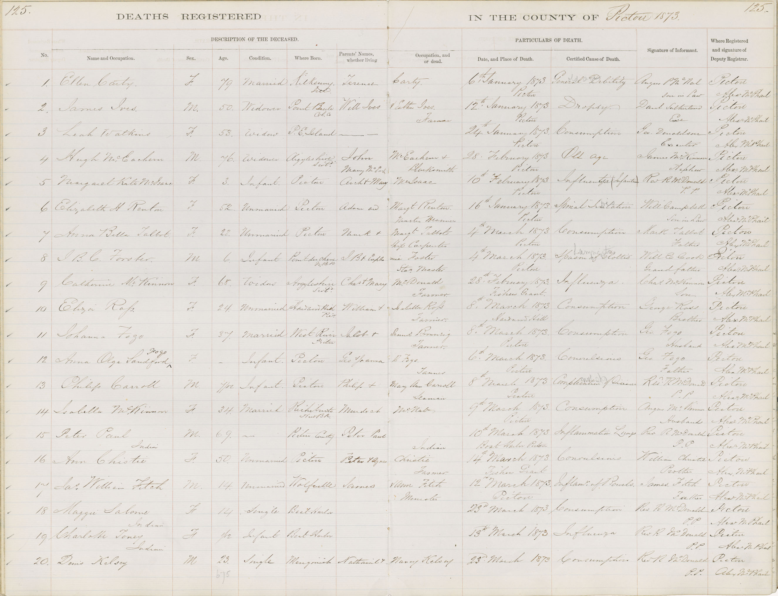 Death Registration: Year: 1873 book: 1813 page: 125 number: 1