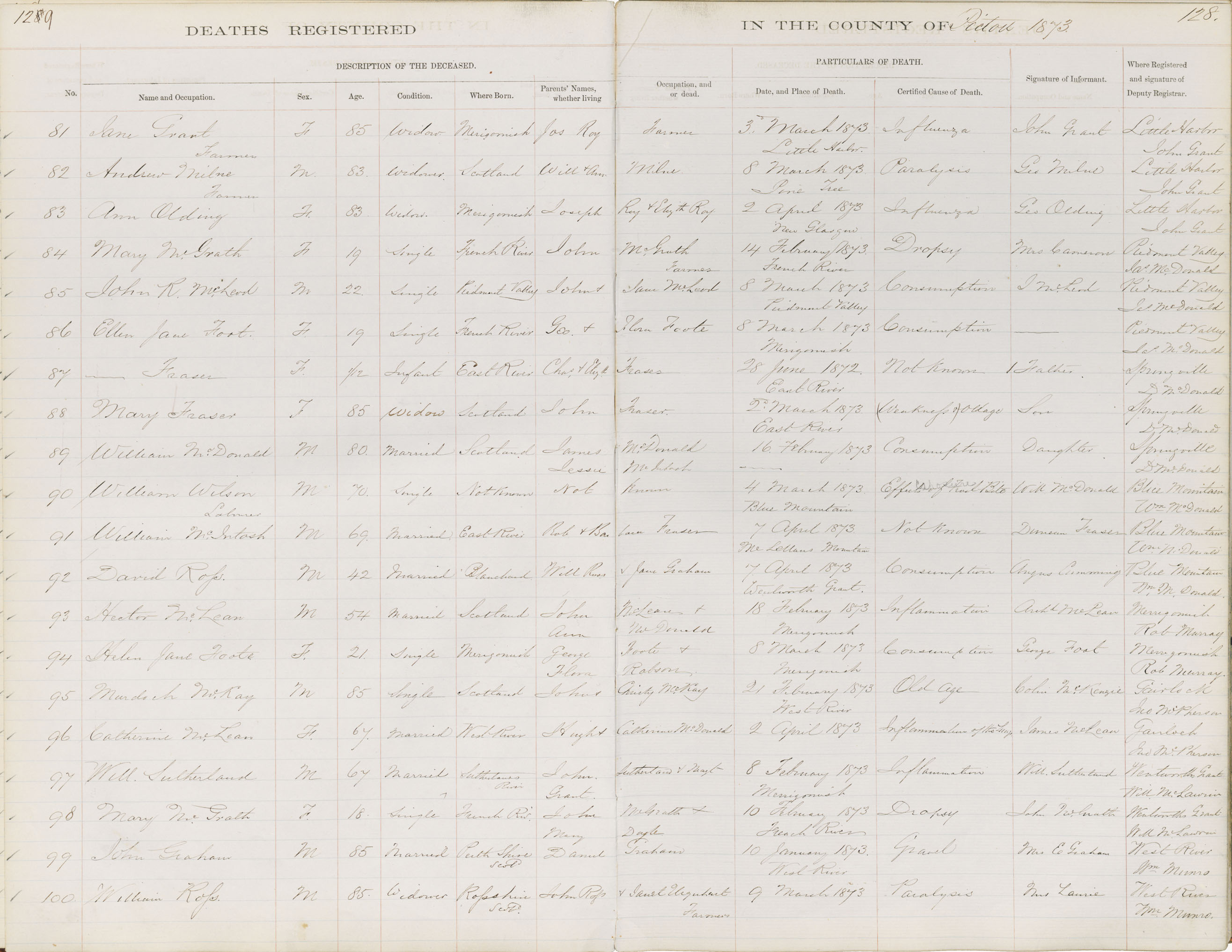 Death Registration: Year: 1873 book: 1813 page: 129 number: 81