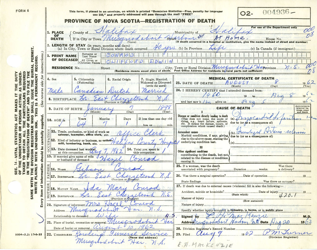 Death Registration: Year: 1962 number: 4936