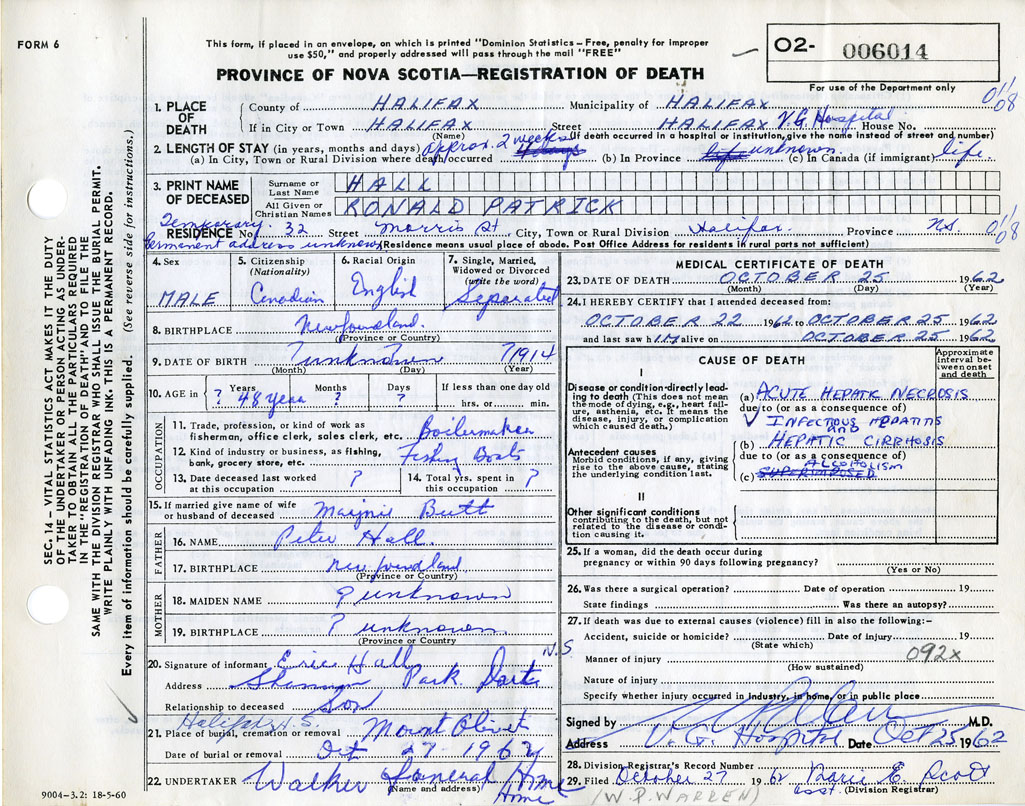 Death Registration: Year: 1962 number: 6014