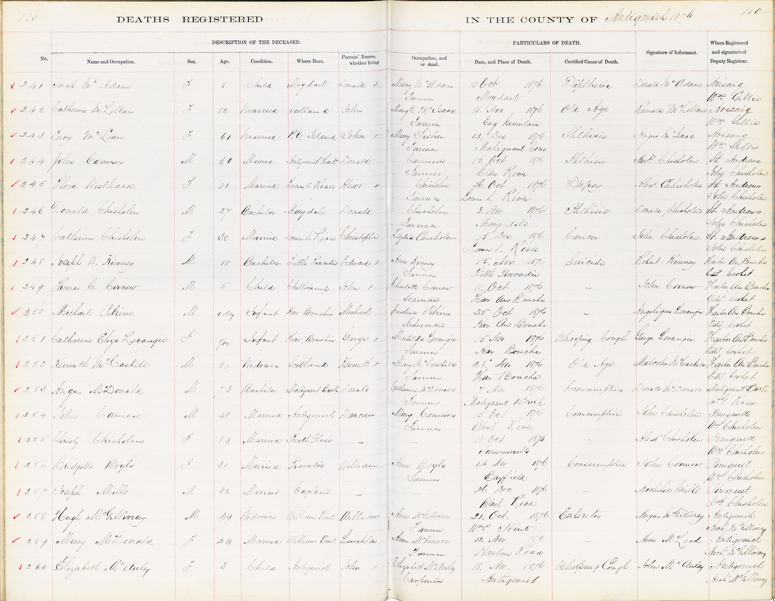Death Registration: Year: 1876 book: 1802 page: 110 number: 255