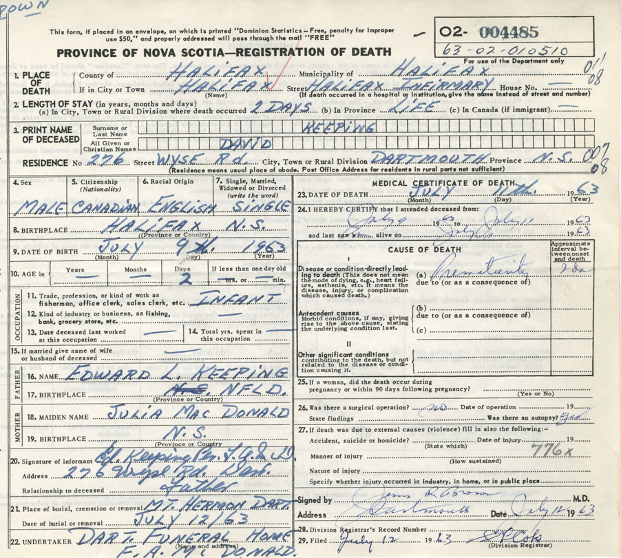 Death Registration: Year: 1963 number: 4485